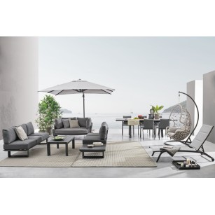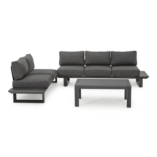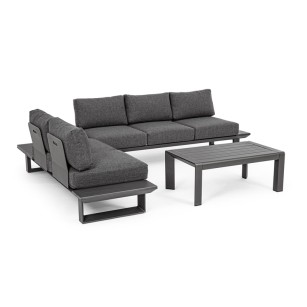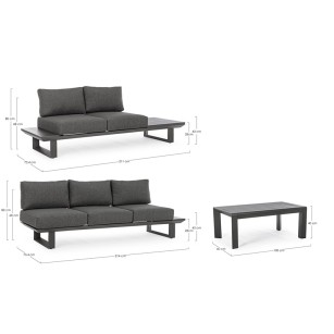 Conjunto Modular KONNOR fabricado en aluminio barnizado al polvo (POLIÉSTER) . Cojines asiento y respaldo desenfundables con tejido repelente al agua ( OLEFIN 100% POLIPROPILENO).