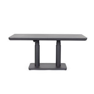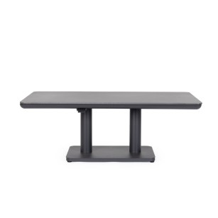mesa MIGUEL fabricada en estructura de aluminio color Antracita. tablero de piedra sinterizada (PIEDRA NATURAL TRABAJADA A ALTAS TEMPERATURAS - ESPESOR 11MM).aLTURA REGULABLE EN posición LIBRE MEDIANTE PALANCA.