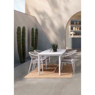 mESA MODELO ALCORA CON ESTRUCTURA DE ALUMINIO BARNIZADO A POLVO (POLIÉSTER). TABLERO DE PIEDRA SINTERIZADA (PIEDRA NATURAL TRABAJADA A ALTAS TEMPERATURAS - ESPESOR 11MM). TORNILLERÍA DE ACERO INOXIDABLE. PATAS PARA MONTAR.