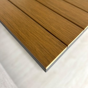 Set Rinconera TETUAN fabricada en aluminio blanco o Antracita. Reposabrazos y tablero de mesa de resina imitación madera. Tapizado color gris de 15cm. Mesa elevable.