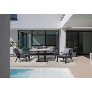 ESTRUCTURA DE ALUMINIO BARNIZADO A POLVO (POLIÉSTER). TABLERO DE cerámica (ESPESOR 10MM). ALTURA REGULABLE MEDIANTE PALANCA. TORNILLERÍA DE ACERO INOXIDABLE.