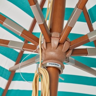 Parasol MADEIRA 300 de Ezpeleta fabricado en madera procedente de fuentes sostenibles con Certificado FSC . Mástil de 48 mm. y 8 varillas de 17x22 mm. con apertura por poleas