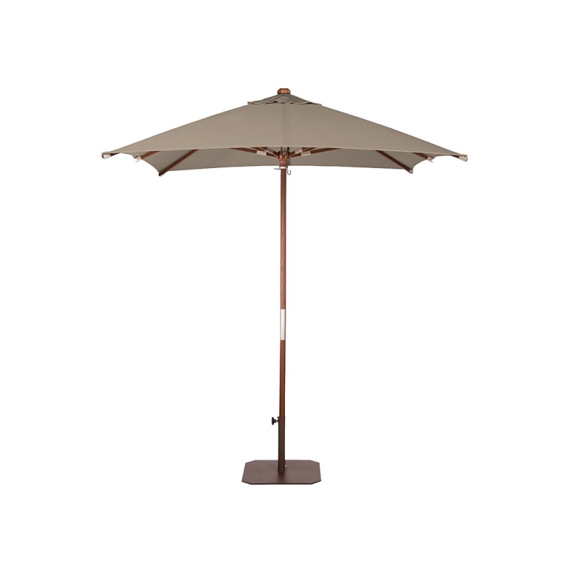 Parasol JAVA 200 x 200 de Ezpeleta fabricado en madera procedente de fuentes sostenibles con Certificado FSC. Mástil de 38 mm. y 8 varillas de 17 x 22 mm. con apertura por poleas.