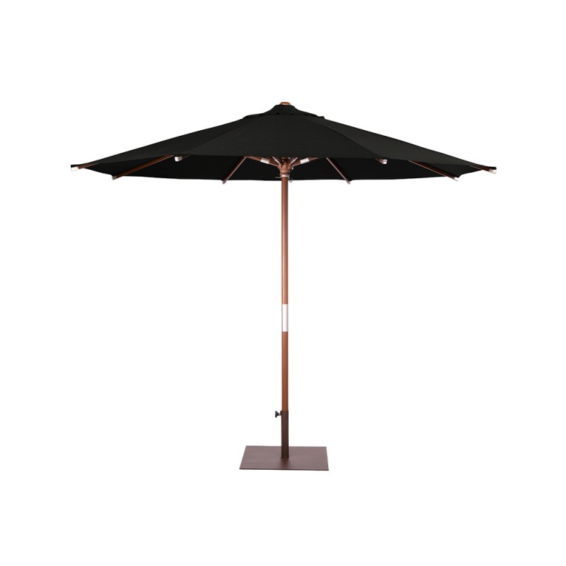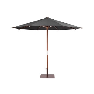Parasol JAVA 300 de Ezpeleta fabricado en madera procedente de fuentes sostenibles con Certificado FSC . Mástil de 48 mm. y 8 varillas de 17x22 mm. con apertura por poleas
