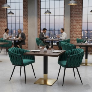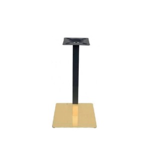 Pie de mesa con tubo central cuadrado de 80 x 80 mm. base con capa de Acero Inox de 45 x 45 cm. con tacos regulables