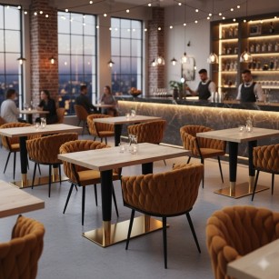 Pie de mesa con doble tubo central Conico redondo de 76-89 mm. base rectangular de 40 x 70 cm. con tacos regulables