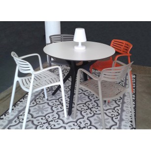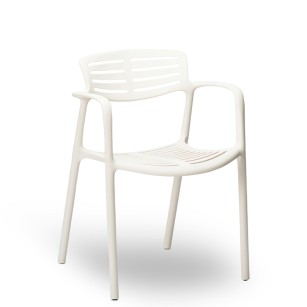Sillon TOLEDO de Jorge Pensi, apilable con brazos para uso interior y exterior . Fabricado en una sola pieza de polipropileno. Peso neto 3,85 kg. Medidas: 55 x 58,5 x 77,7 cm. altura asiento 44,5 cm. altura brazos 68,4 cm.