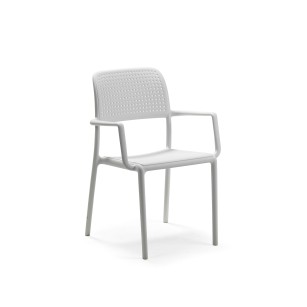 Sillón BORA de NARDI .Apilable de polipropileno con fibra de vidrio, patas tubulares con tacos antideslizantes.peso 4,4 kg. medidas: 58.5 x 55 x 86 cm. Colores disponibles: Blanco, Tortora, Cafe ,Rojo, Antracita, Agave y Azul celeste Especialmente indicada para uso Exterior y combinable con toda la gama de Mesas de NARDI OUTDOOR CONSULTE DESCUENTO EN COMBINACION CON MESAS NARDI